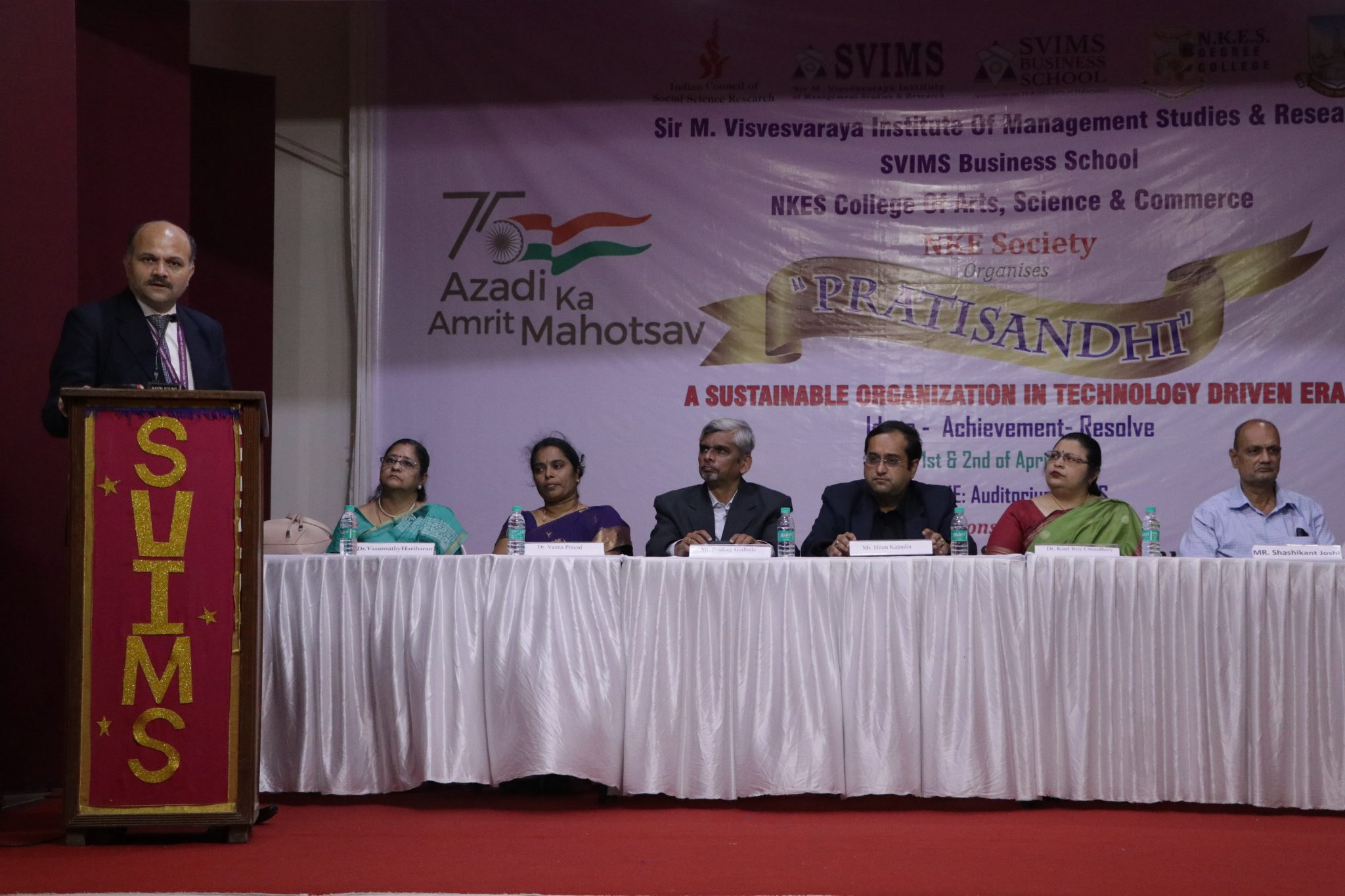 The NKE Society Group of Institutions viz., Sir M Visvesvaraya Institute of Management Studies and Research (SVIMS), SVIMS Business School and NKES College of Arts, Science & Commerce had organised a two-day multi-disciplinary International Conference ‘Pratisandhi” sponsored by the Indian Council of Social Science Research (ICSSR), New Delhi, under the aegis of University of Mumbai and as part of the Government of India’s ‘Azadi ka Amrit Mahotsav’ initiative. The conference was held on April 1, 2022 and April 2, 2022 at the NKE Society’s Wadala, Mumbai campus and its theme was “Sustainable organization in technology driven era”